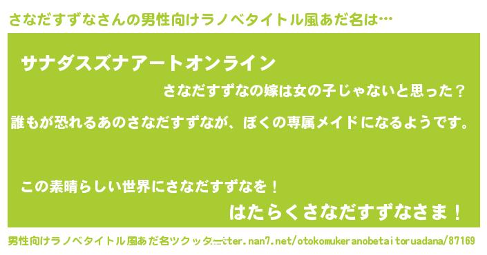 さなだすずなさんの男性向けラノベタイトル風あだ名をツクッター!