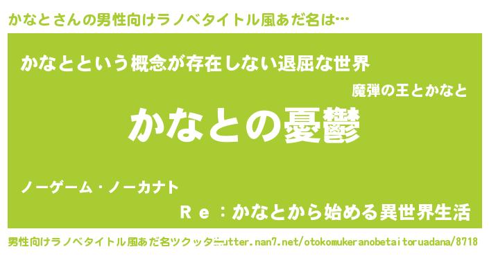 | 欧米人風あだ名 | 『マイケルかなと』『ダルビッシュかなと』 |