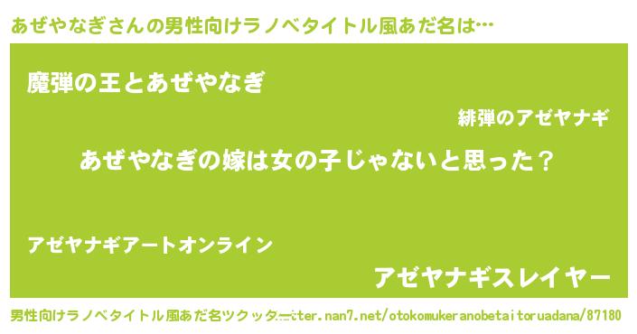 あぜやなぎさんの男性向けラノベタイトル風あだ名をツクッター!