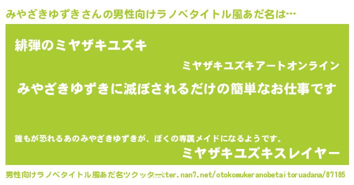 | 恥ずかしいあだ名 | 『プリティーみやざきゆずき』『みやちん』 |