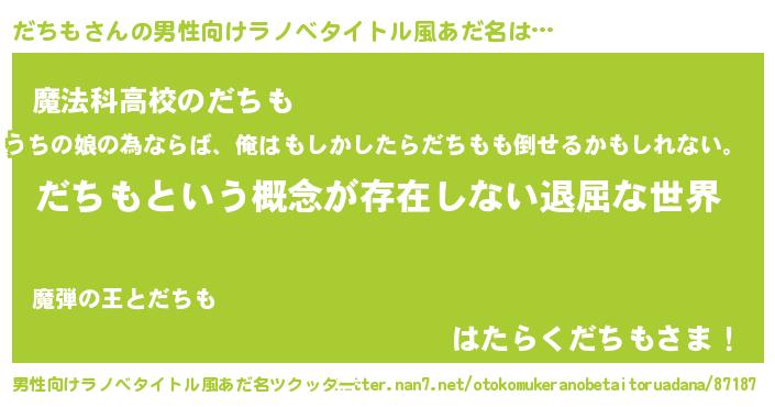 | 女子向けラノベタイトル風あだ名 | 『異世界で失敗しない100のだちも』 |