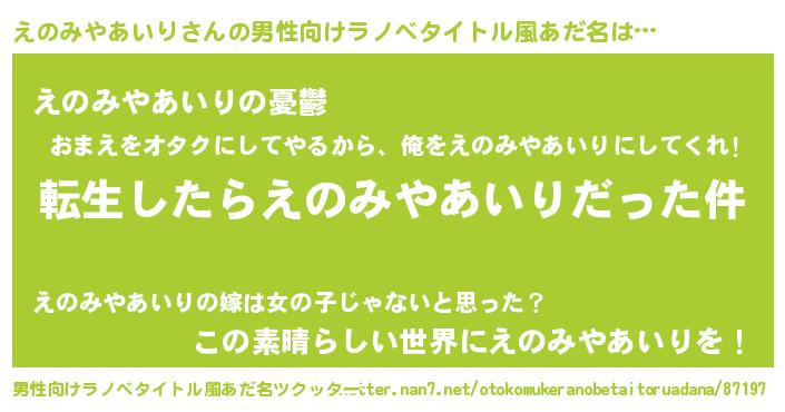 | 胡散臭い通販商品みたいなあだ名 | 『モテモテ間違いなし水晶球…その名も「えのみやあいり」』 |