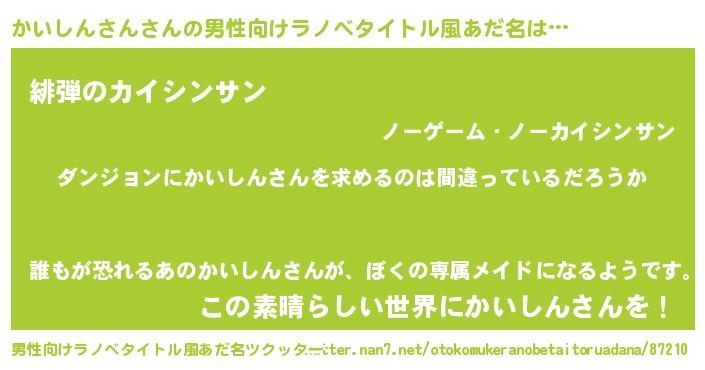 | 女子向けラノベタイトル風あだ名 | 『かいしんさんは平凡を望む』 |