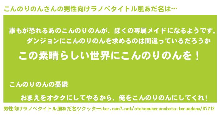 こんのりのんさんの男性向けラノベタイトル風あだ名をツクッター!