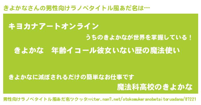 | 意味不明あだ名 | 『つくし科きよかな属』『自称きよかな』 |