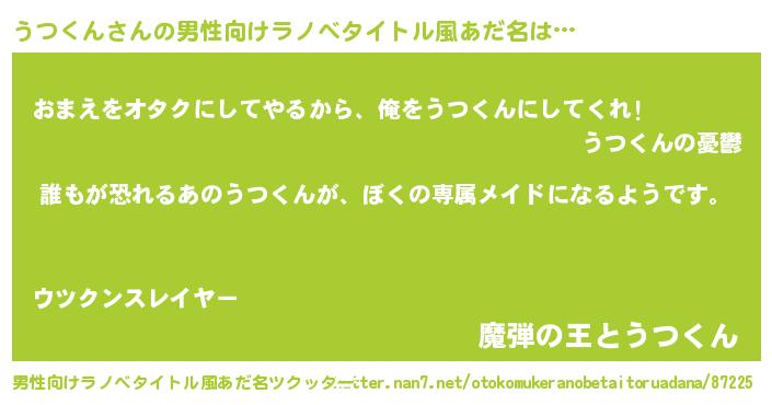 | 女子向けラノベタイトル風あだ名 | 『うつくんの契約王妃』『うつくん恋絵巻』 |