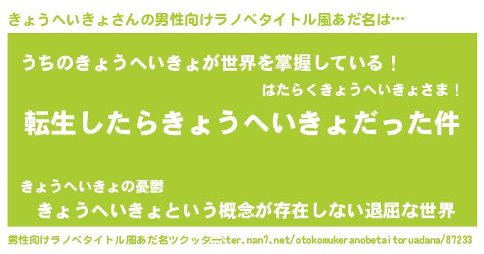 | 胡散臭い通販商品みたいなあだ名 | 『来世でも幸せになれる招き猫…その名も「きょうへいきょ」』 |