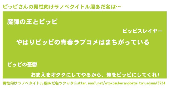 | 女子向けラノベタイトル風あだ名 | 『ピッピ伯爵の花嫁』『ピッピ恋絵巻』 |