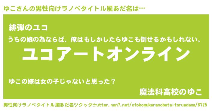 | ヒーロー風カッコイイあだ名 | 『スーパーユコ』『超時空戦士ユコ』 |