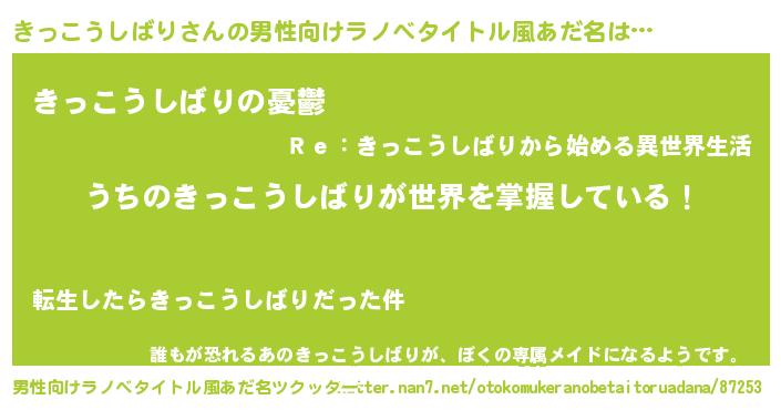 | ヒーロー風カッコイイあだ名 | 『スーパーキッコウシバリ』 |