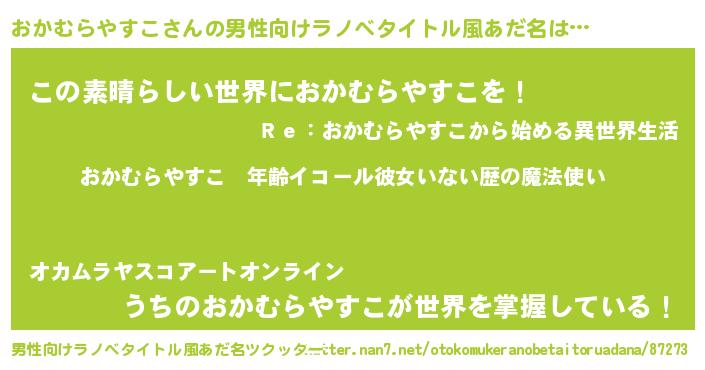 | ヘコむあだ名 | 『おかふぇ~』『おかむらやすこ(苦笑)』 |
