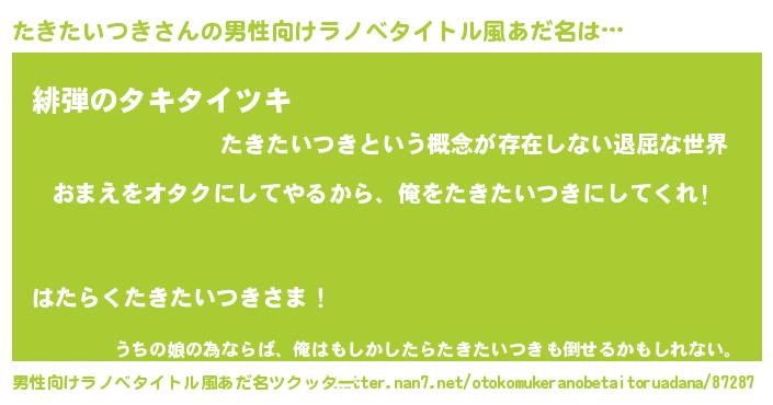 | 女子向けラノベタイトル風あだ名 | 『たきたいつき恋絵巻』 |