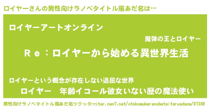 | ヘコむあだ名 | 『ロイもー』『ロイヤー(笑)』 |