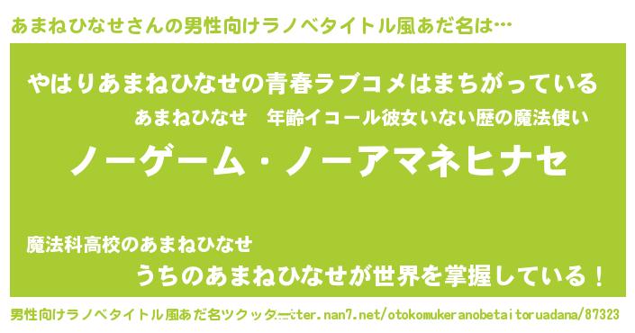 | 女子向けラノベタイトル風あだ名 | 『死神あまねひなせの再婚』 |