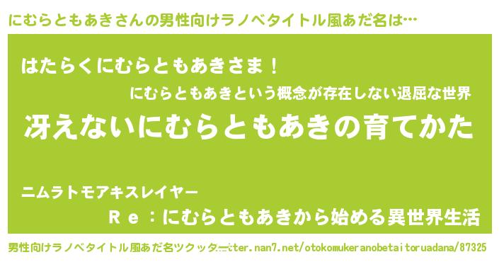 | ヘコむあだ名 | 『にむらともあき(震え声)』『にむもー』 |