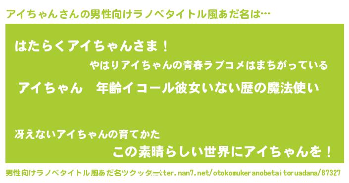 | 女子向けラノベタイトル風あだ名 | 『アイちゃんの玉の輿計画!』 |