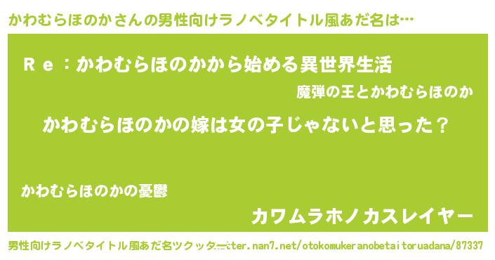 かわむらほのかさんの男性向けラノベタイトル風あだ名をツクッター!