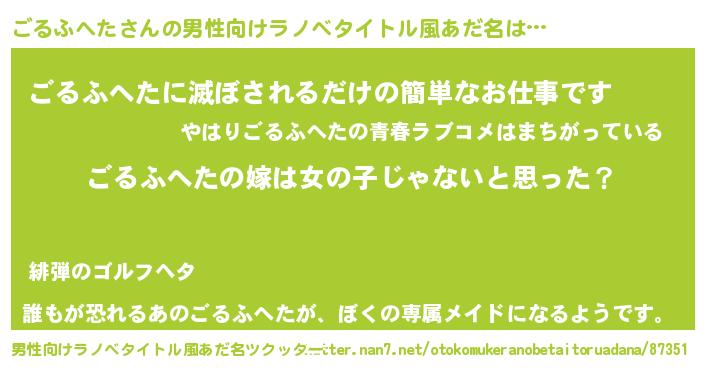 | 女子向けラノベタイトル風あだ名 | 『ごるふへた様がみてる』 |