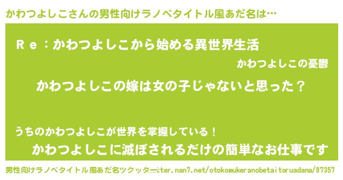 | ヒーロー風カッコイイあだ名 | 『天弓騎士カワ』『最強戦士カワツヨシコ』 |