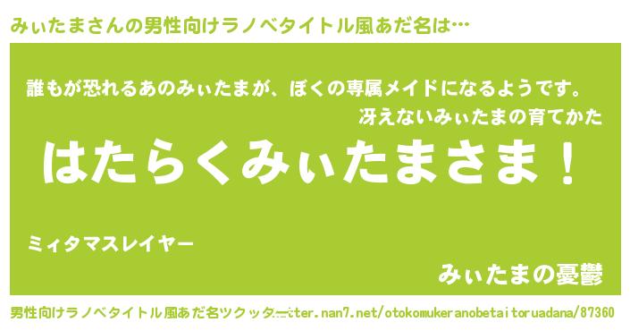 | ヘコむあだ名 | 『みぃたま(笑)』『みぃもー』 |