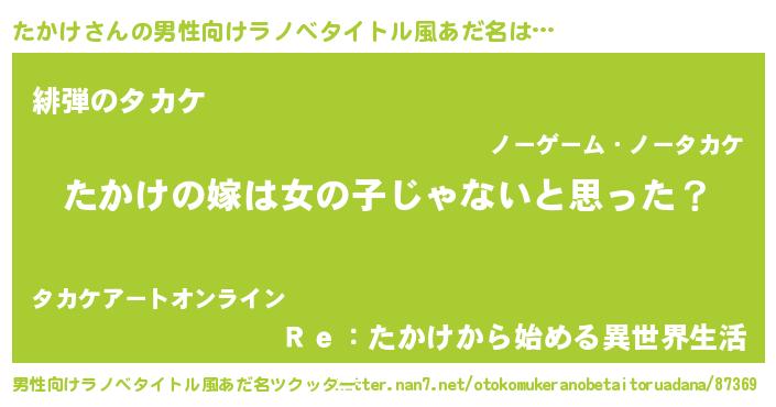 たかけさんの男性向けラノベタイトル風あだ名をツクッター!