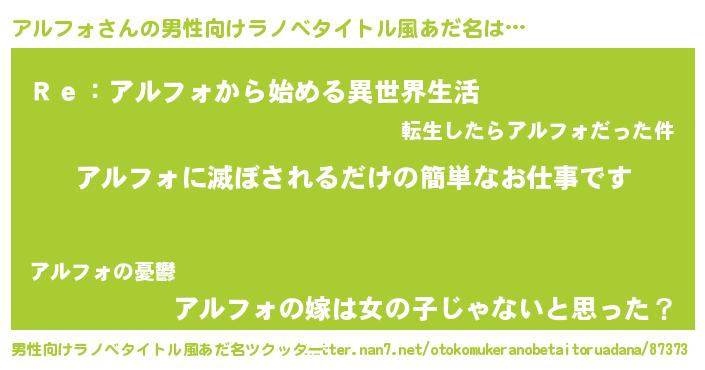 | 意味不明あだ名 | 『自称アルフォ』『つくし科アルフォ属』 |
