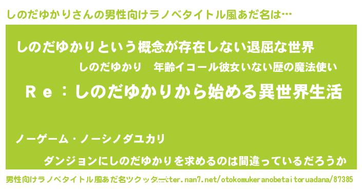 | 女子向けラノベタイトル風あだ名 | 『しのだゆかりストレイドッグス』 |