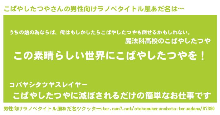 | 女子向けラノベタイトル風あだ名 | 『悪役こばやしたつやに転生したようですが、知った事ではありません』 |