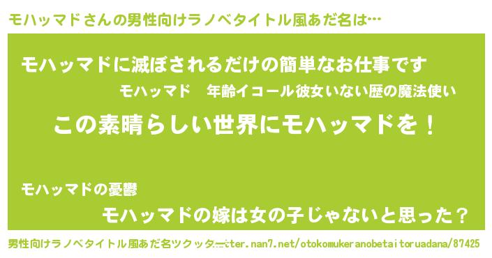 | 意味不明あだ名 | 『住所不定無職モハッマド(65歳)』 |
