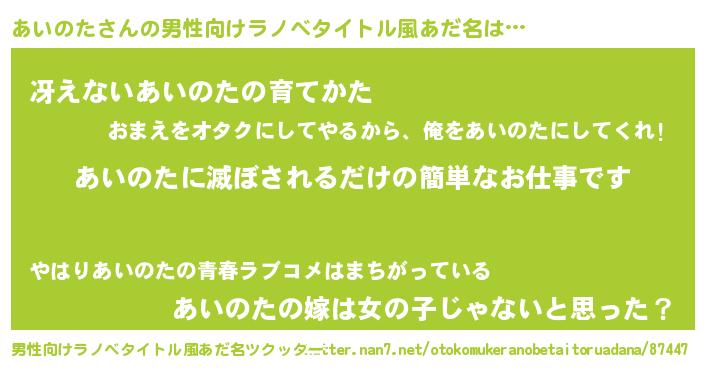 | 意味不明あだ名 | 『とにかく怪しいあいのた』 |