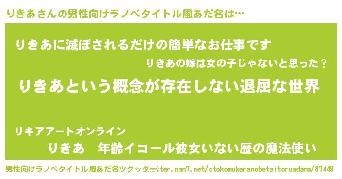 | 女子向けラノベタイトル風あだ名 | 『りきあの契約王妃』『りきあ様がみてる』 |