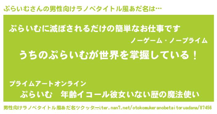 | 意味不明あだ名 | 『ヨモギ科ぷらいむ属』『自称ぷらいむ』 |