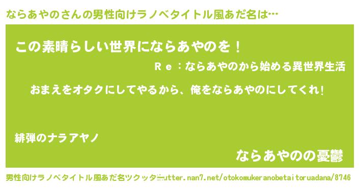 | 女子向けラノベタイトル風あだ名 | 『ならあやの恋絵巻』 |