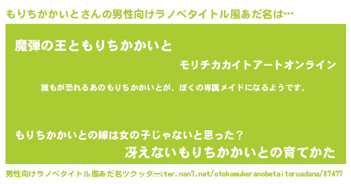| ヘコむあだ名 | 『もりちかかいと(小並感)』『もりにゅー』 |