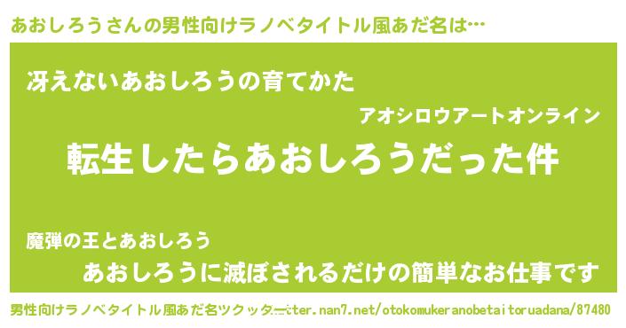 | 女子向けラノベタイトル風あだ名 | 『あおしろうの玉の輿計画!』 |