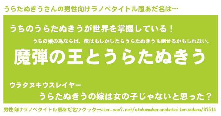 | 意味不明あだ名 | 『住所不定無職うらたぬきう(89歳)』 |