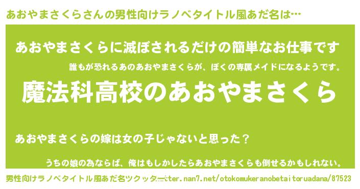 | 女子向けラノベタイトル風あだ名 | 『あおやまさくらアンティーク』 |