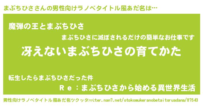 | ヘコむあだ名 | 『なまこ酢』『まぶ太郎』『まぶもー』 |