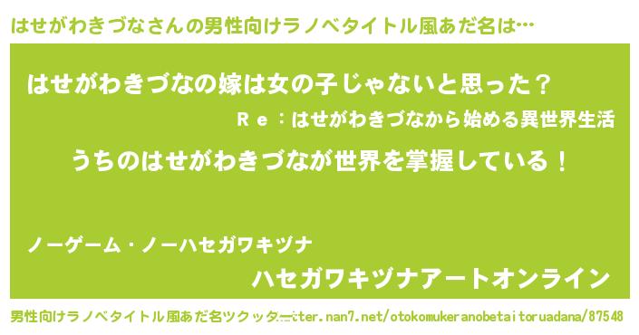 | 意味不明あだ名 | 『とにかく怪しいはせがわきづな』 |