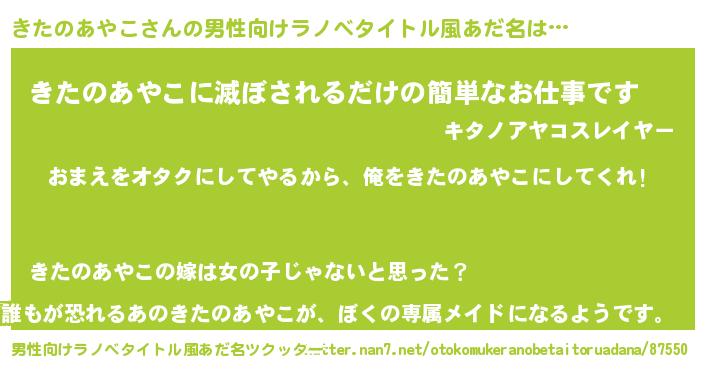 きたのあやこさんの男性向けラノベタイトル風あだ名をツクッター!