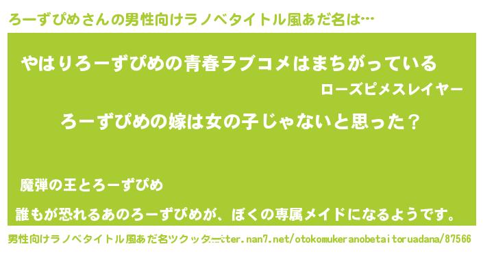| 女子向けラノベタイトル風あだ名 | 『ろーずぴめ様がみてる』 |