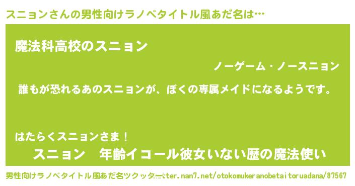 | ファンタジー風あだ名 | 『スニディッシュ』『ゼスニトゥ』 |