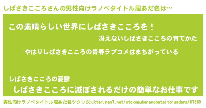 | 女子向けラノベタイトル風あだ名 | 『しばさきこころ伯爵の花嫁』 |