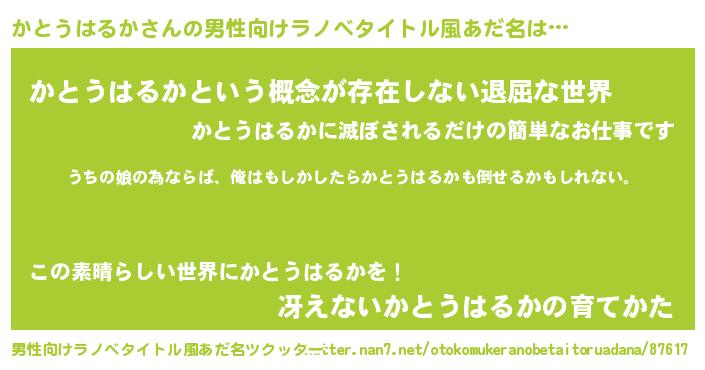 | ファンタジー風あだ名 | 『エターナルカトウハルカー』 |