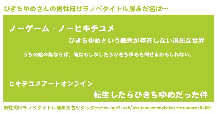 | 女子向けラノベタイトル風あだ名 | 『ひきちゆめの婚約者』 |