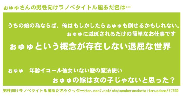 | ヘコむあだ名 | 『ぉゅゅ(笑)』『なまこ酢』『ぉゅを』 |