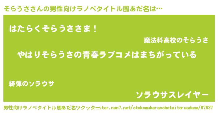 | 意味不明あだ名 | 『そらうさフォーエバー』『自称そらうさ』 |