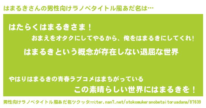 | 胡散臭い通販商品みたいなあだ名 | 『絶対に幸福をもたらす健康食品…その名も「はまるき」』 |