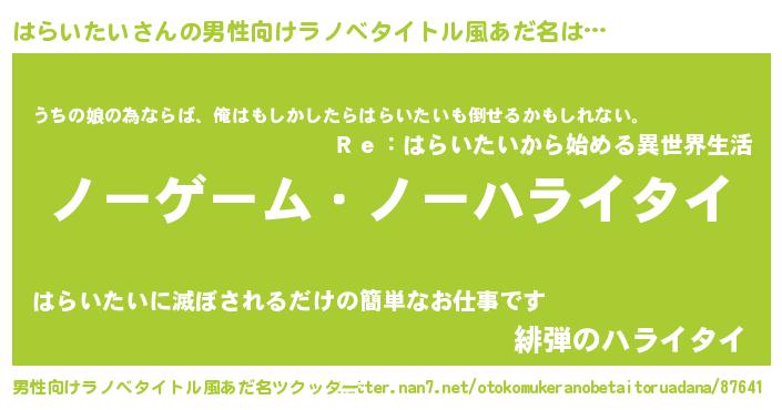 | ヒーロー風カッコイイあだ名 | 『慈愛の使者はらいたい』 |
