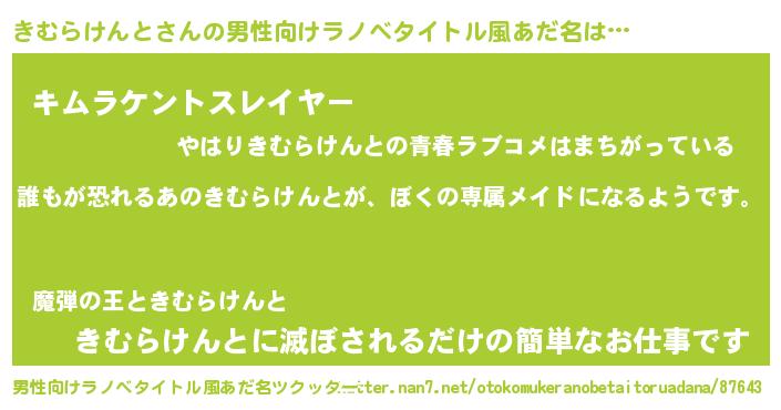 | 意味不明あだ名 | 『永久保存きむらけんと』 |